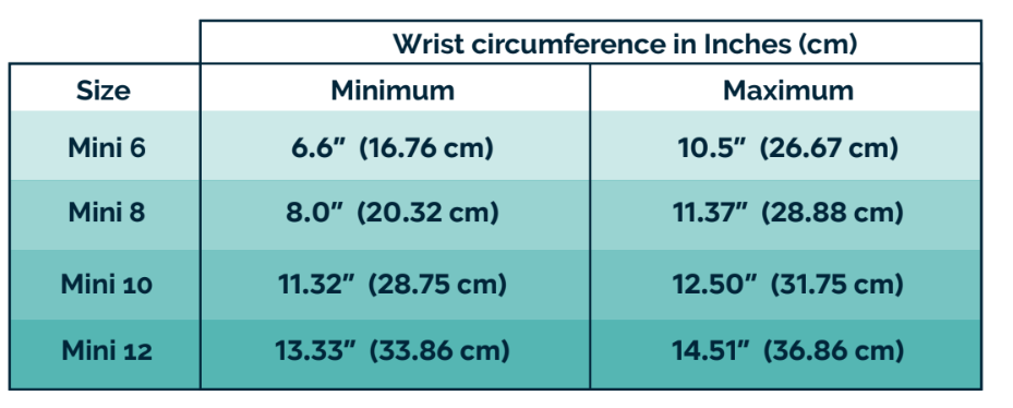 | Size | Minimum Wrist Circumference | Maximum Wrist Circumference |